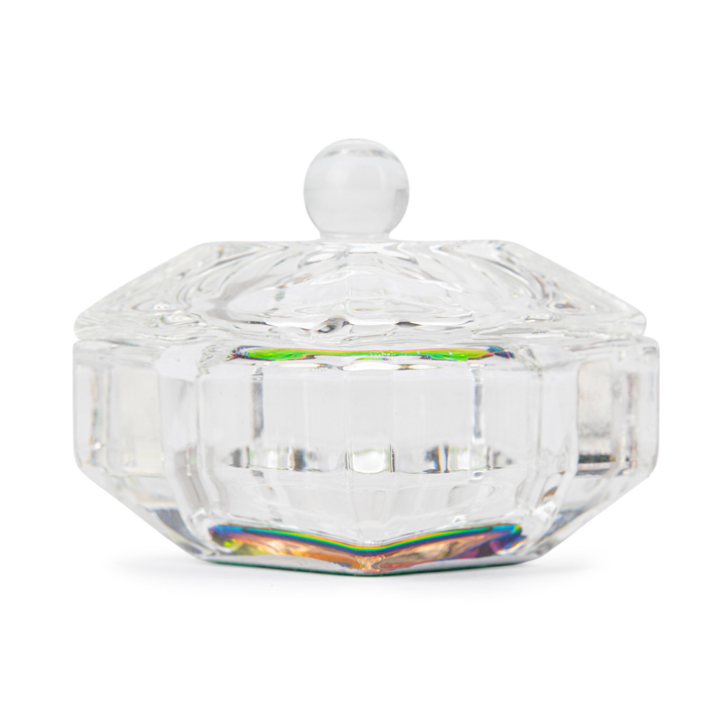 Un bicchierino di vetro con coperchio non solo decorerà la tua scrivania, ma soprattutto ti permetterà di proteggere i prodotti da polvere e altri contaminanti. Puoi usarlo come contenitore per liquidi cosmetici (liquidi, detergenti) o come bicchiere per preparare henné e coloranti. Il materiale in feltro sul fondo del contenitore lo proteggerà dallo scivolamento.