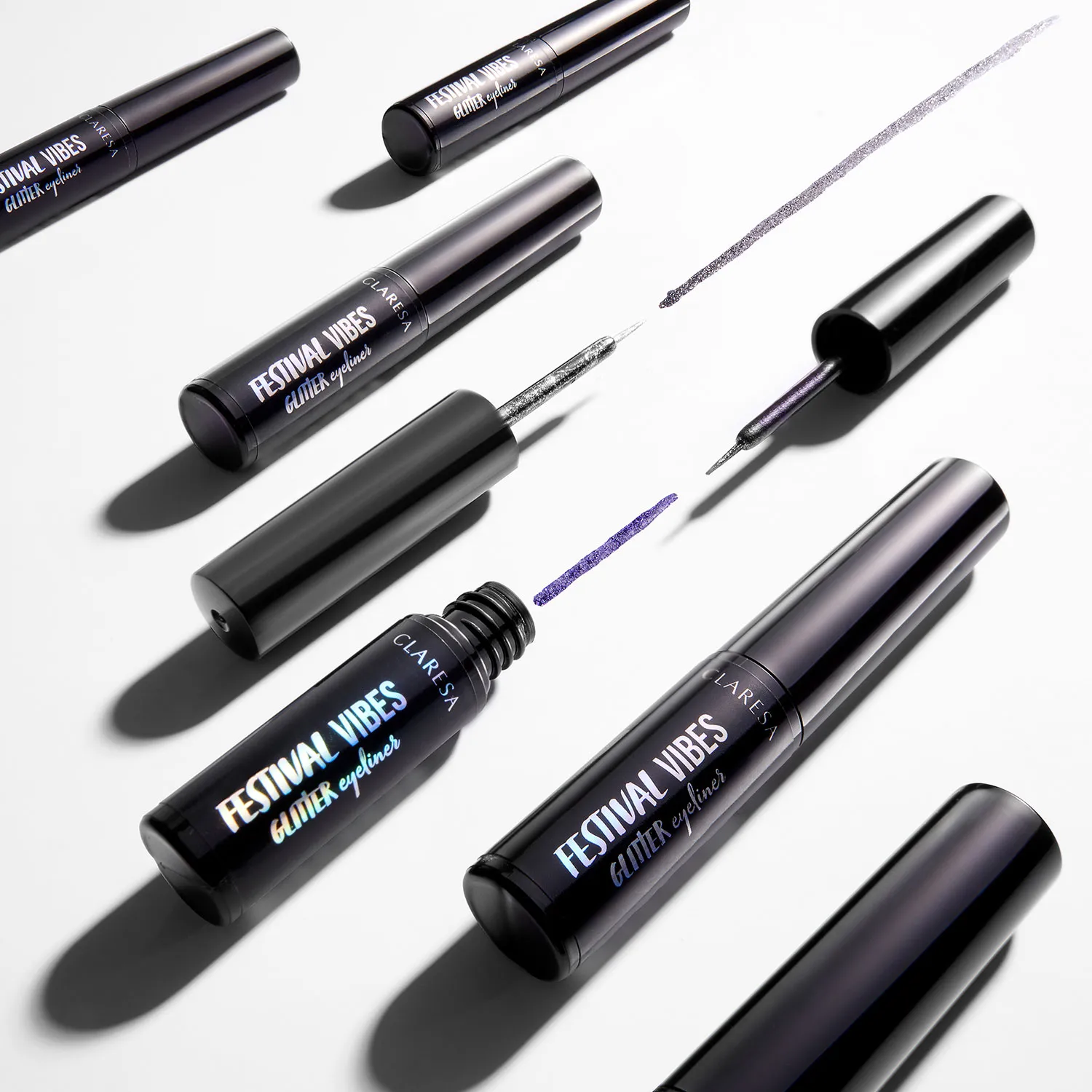 Gli eyeliner Festival Vibes non sono solo particelle lucenti, ma anche una base colorata opaca che conferisce all’eyeliner un’eccezionale versatilità ed espressività del colore! Grazie ad esso, il tratto è più resistente all’abrasione e i colori sono più profondi ed espressivi, aggiungendo non solo lucentezza ma anche intensità al trucco.