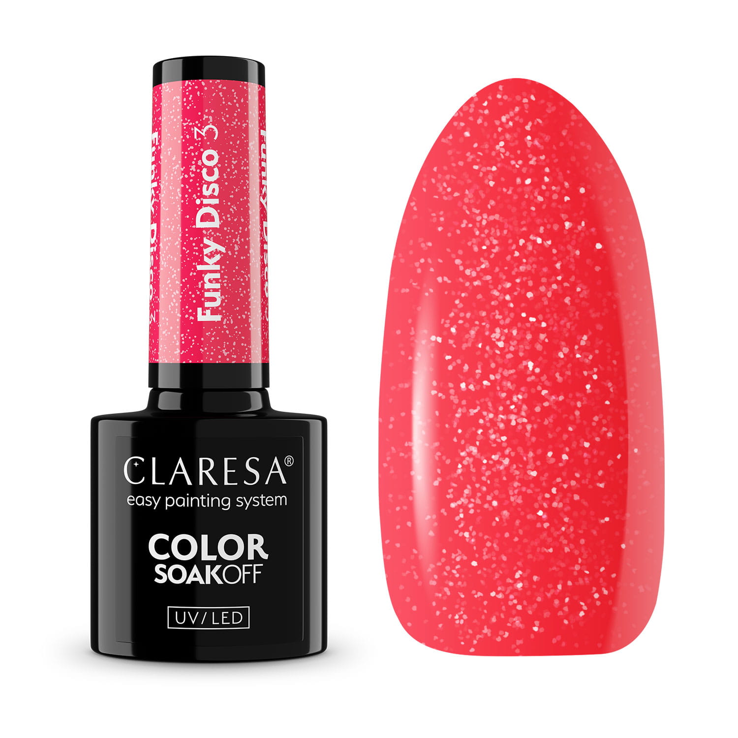 Claresa Funky Disco . 7 smalti ibridi nei toni del rosa, arancio, giallo, verde, blu e viola con l’aggiunta di particelle lucide sono la scelta perfetta per chi ama esprimersi attraverso il colore.