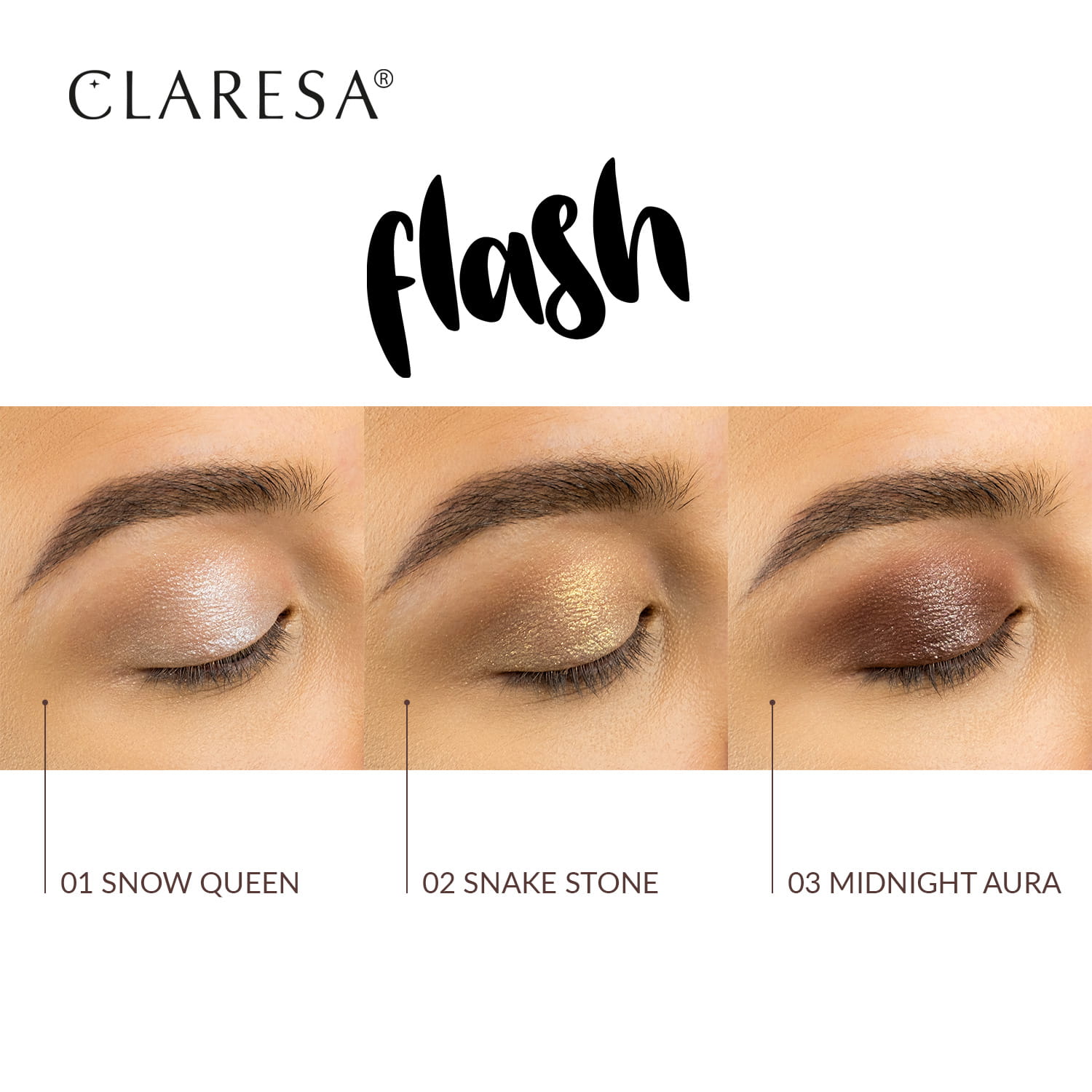 Scopri l’ombretto FLASH, che porta il trucco a un livello completamente nuovo di intensità e lucentezza. Il suo finish altamente scintillante crea sulla palpebra una superficie lucida che dura tutto il giorno. FLASH è la quintessenza del flash e lo strumento migliore per creare look indimenticabili e scintillanti!