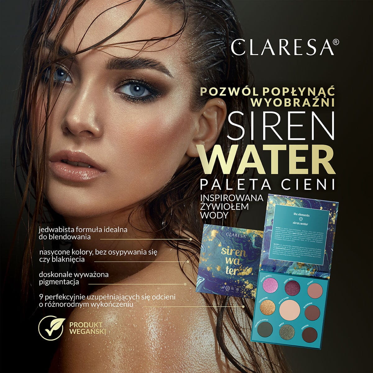 La palette SIREN WATER, ispirata all’elemento acqua, è una combinazione di colori tenui e freddi e lucenti. Lascia fluire la tua immaginazione e crea una varietà di make up: da quelli classici, calmi come le acque in una giornata senza vento, a quelli più predatori e intriganti, come il canto di una sirena.