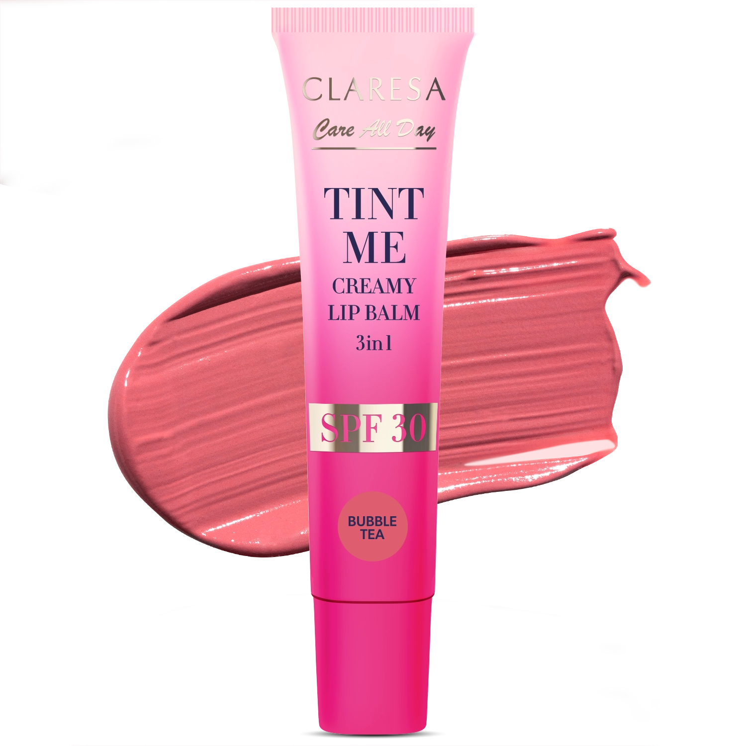 Colore intenso, cura confortevole e protezione quotidiana: tutto ciò di cui hai bisogno, racchiuso in un pratico tubetto. Claresa TINT ME è il tuo nuovo balsamo labbra preferito con effetto colorato e SPF 30, dalla texture avvolgente e cremosa che nutre e sublima in un solo gesto. Perfetto per la tua borsa, perfetto per l’uso quotidiano, perfetto per le tue labbra.