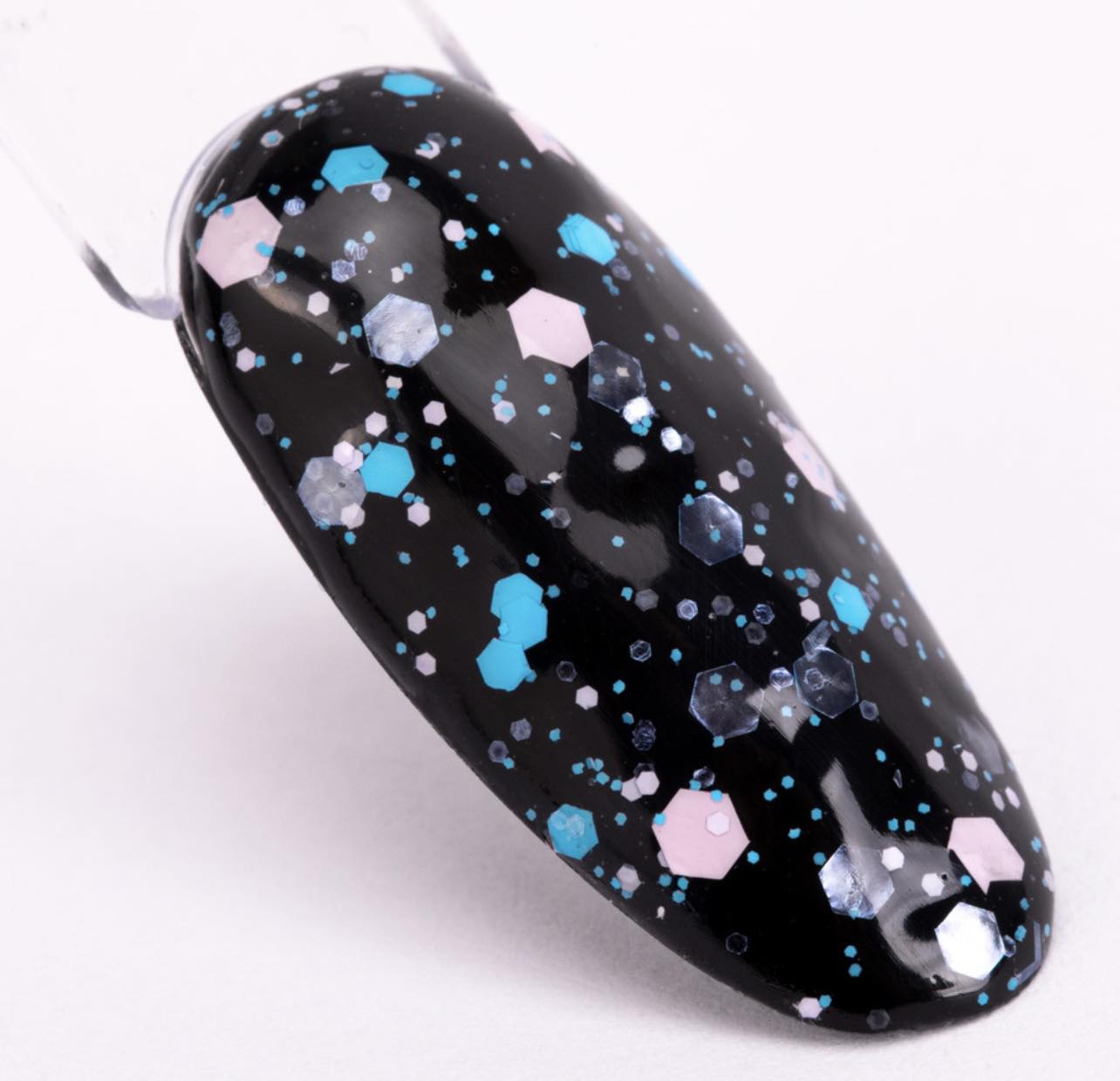 Migliaia di esagoni olografici scintillanti, polvere sottile, un tripudio di colori gioiosi: tutto questo è stato racchiuso in una finitura dedicata a un look da festa. Un prodotto 2 in 1 è un meraviglioso insieme di particelle in vari colori e trame incorporate in un prodotto di finitura. Il prodotto viene polimerizzato per circa 60 sec in lampada led/uv da 48w