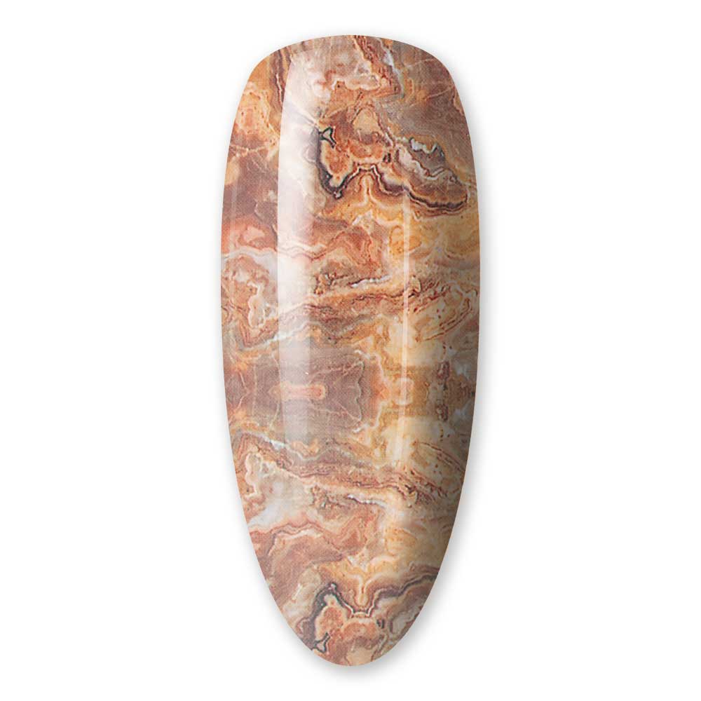 Dopo aver fatto catalizzare il gel foil 30s in lampada, applicare il foil su tutta la superficie e fare una leggera pressione, dopodichè rimuovere il foil, applicare il lucido e far catalizzare in lampada.