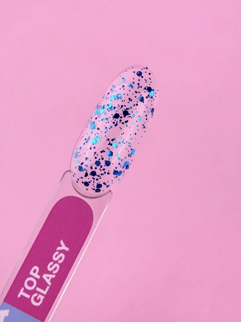 Top Glassy è un top coat no-wipe con elementi decorativi che si abbina senza sforzo a qualsiasi colore di unghie. Dona un tocco distintivo e accattivante alla tua manicure.