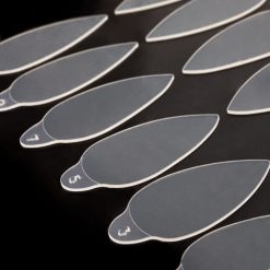 - Incollamo “Magic Stiker” sull’unghia preparata per la correzione oppure sull’unghia allungata con scheletratura o tip moderna in modo che la linea del baffo aderisca perfettamente ai punti di stress e sia a livello.