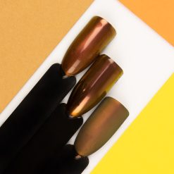 Effetto Mirror Copper – l’effetto rame è la proposta più interessante questo autunno per cambiare la propria manicure. Riflette la luce perfettamente! Una polvere meravigliosa e sottile che puoi strofinare come uno specchio: sta benissimo contro i colori caldi di fine anno. Un effetto luminoso unico e duraturo che ti sorprenderà. Se utilizzato con colori diversi si possono ottenere effetti finali completamente diversi. Ti invitiamo a sperimentare.
