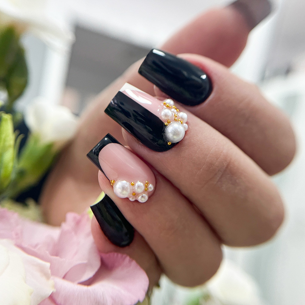Incorpora le perline in gel/acrilico o incollale con colla.