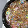 La particolarità di questo gel glitterato sono le piccole e grandi scintille olografiche di incredibile bellezza, che renderanno la tua manicure originale, luminosa e stellata. Il gel glitterato può essere utilizzato come strato decorativo di base, ma anche per creare effetti su diverse superfici con smalti semipermanenti di qualsiasi tonalità. Per esaltare ed enfatizzare la lucentezza e la profondità, il design finale deve essere fissato con un top coat.