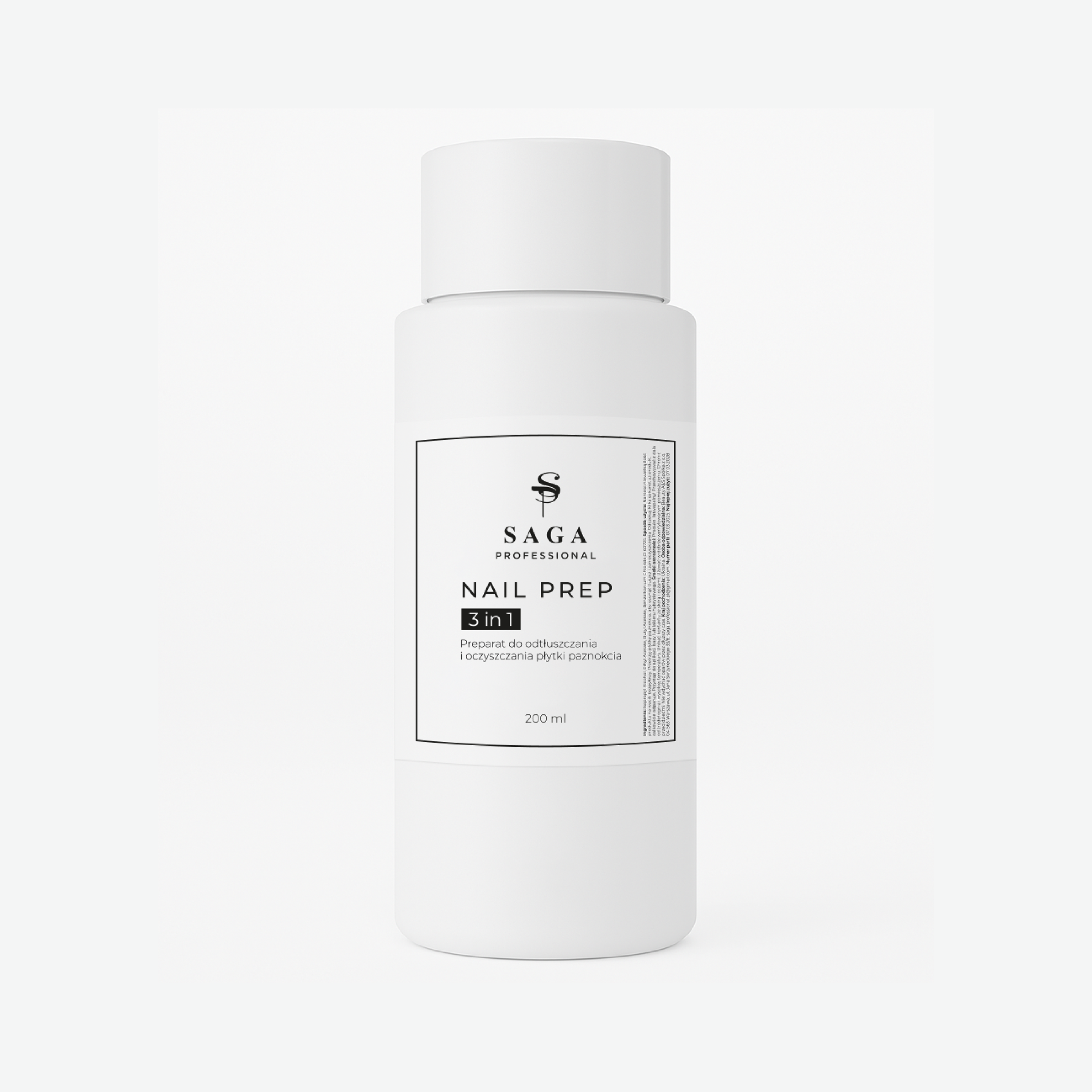Il liquido per manicure preparatorio 3 in 1 di Saga Professional contiene componenti disinfettanti per una pulizia efficace della lamina ungueale, un essiccante che aiuta a preparare la superficie dell’unghia all’adesione del prodotto nella fase successiva dello styling e un adesivo per aumentare la durata della manicure.