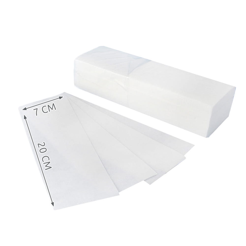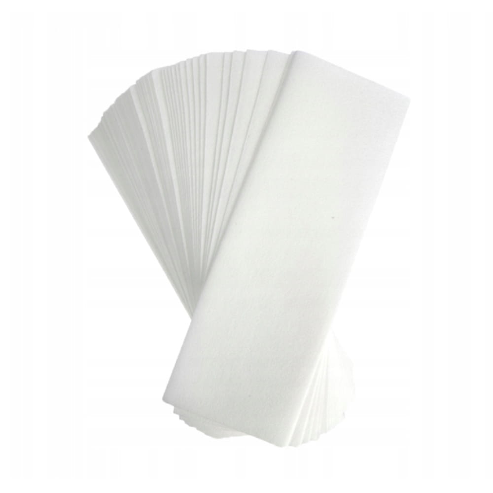 Strisce depilatorie in tessuto confezionate in pellicola, 100 pezzi ciascuna. Realizzati in materiale di alta qualità, garantiscono un’elevata efficienza nella rimozione dei peli superflui senza irritare la pelle. La cera aderisce perfettamente alle strisce rendendo la depilazione omogenea ed efficace anche in caso di peli duri e forti